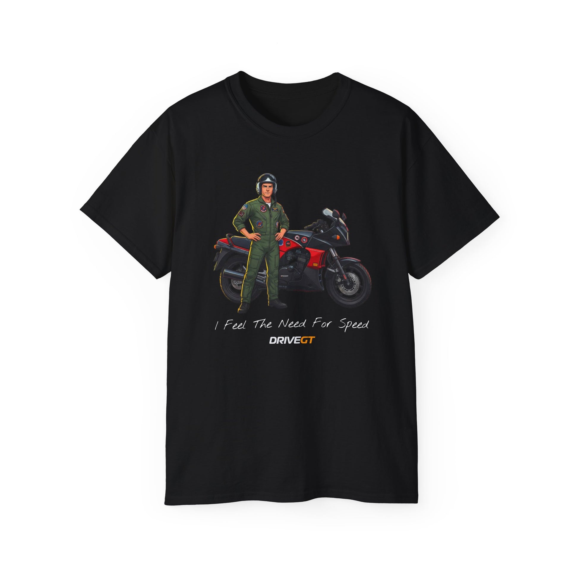 Design: Illustrated front graphic with “I Feel the Need for Speed” quote