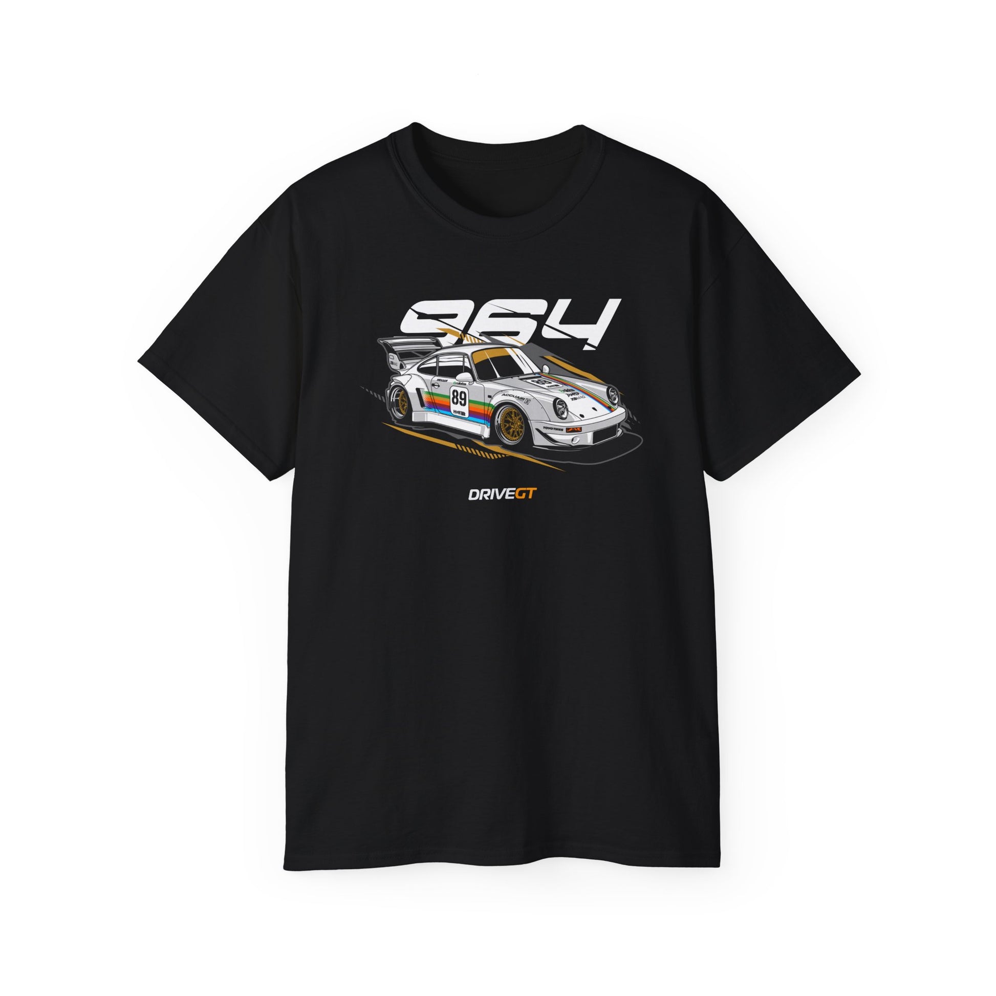 This tee features the iconic Porsche 964 — the aircooled evolution of the 911 that bridged the classic and modern eras. With its wide hips, round headlights, and unmistakable silhouette, the 964 delivers raw driving pleasure wrapped in elegant German precision. Whether stock or RWB-built, it’s a car that speaks to purists.