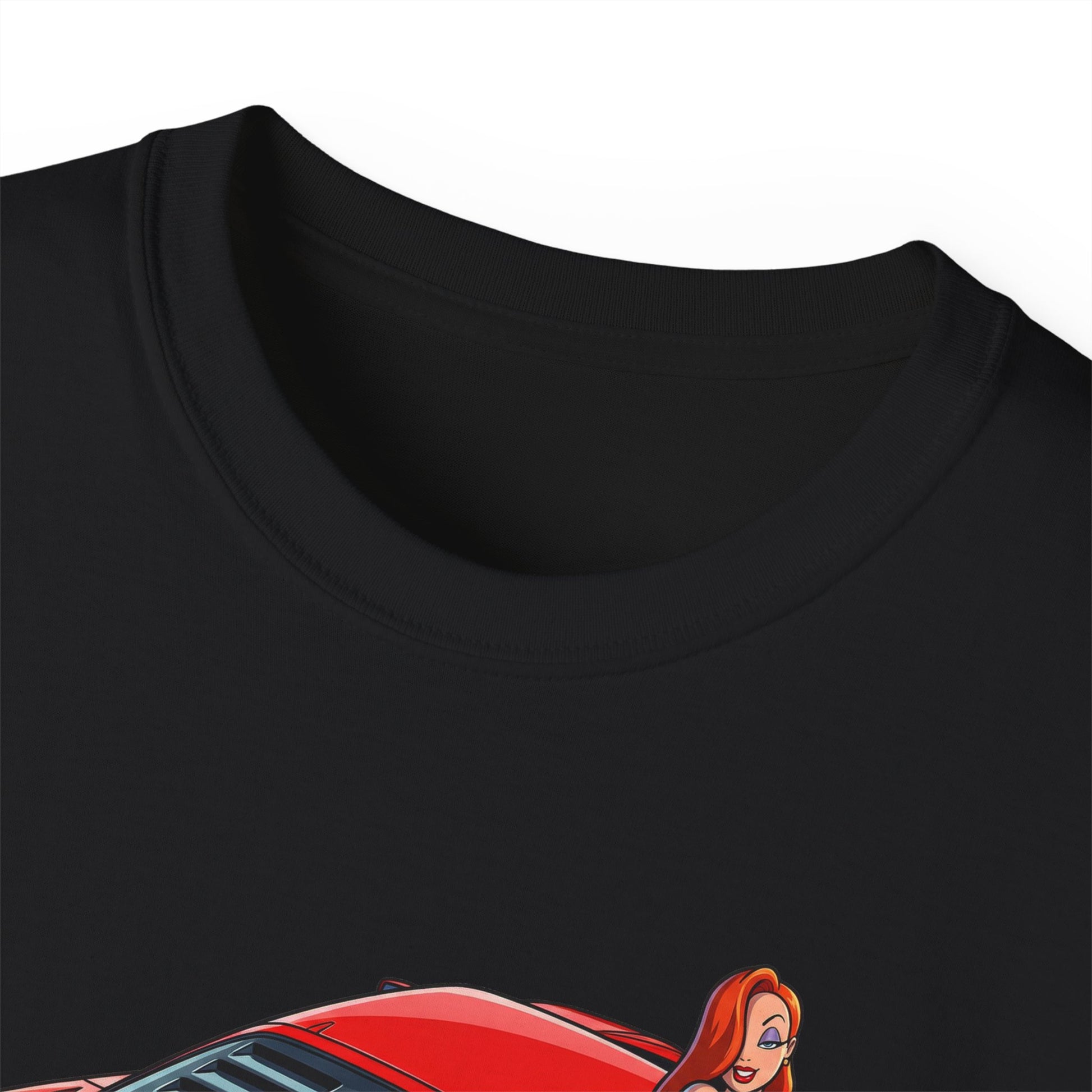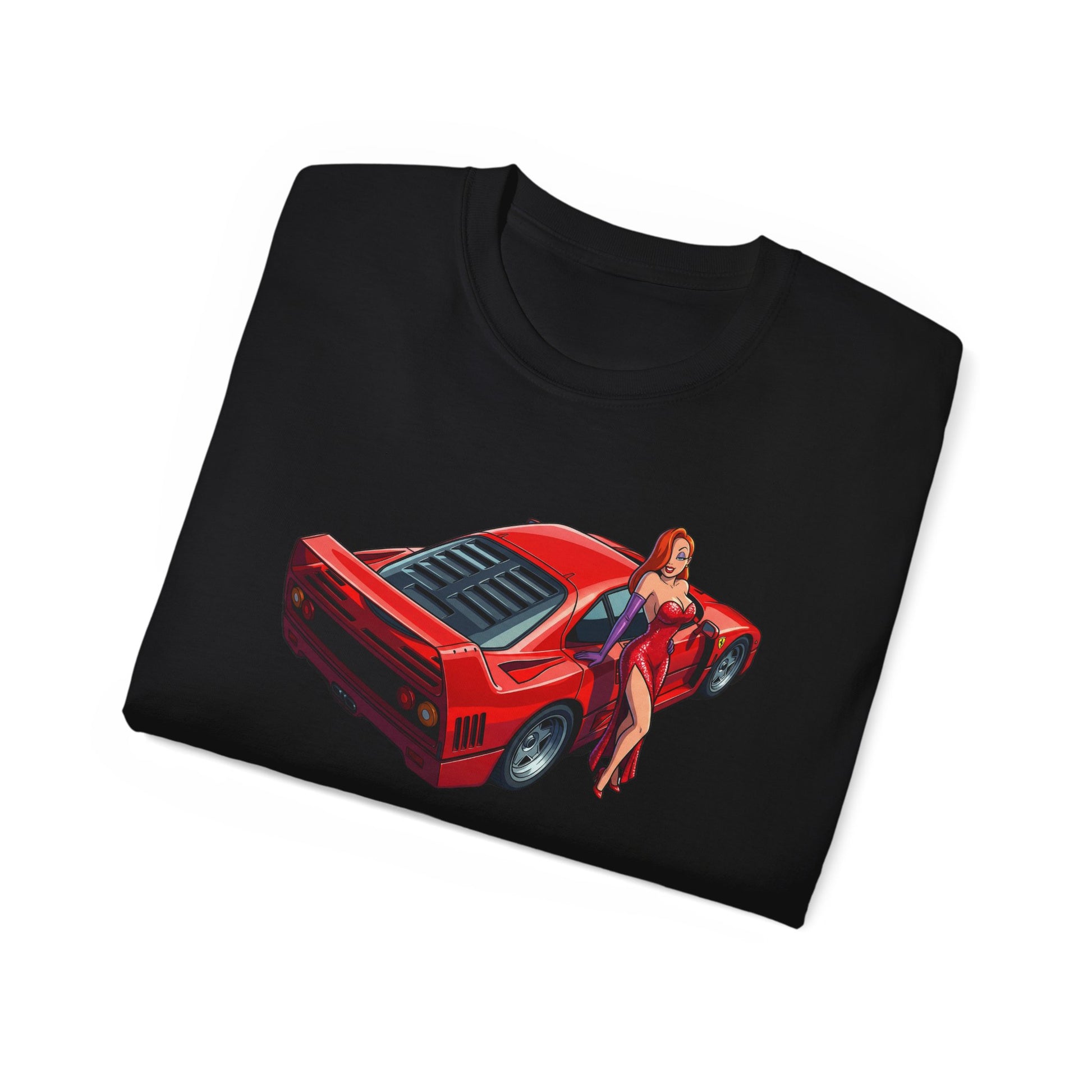 The Scent of a Woman tee features a bold illustrated supercar viewed from above, paired with an iconic cartoon femme fatale leaning effortlessly against its curves. It’s a tribute to power, desire, and timeless design where machines and magnetism collide.